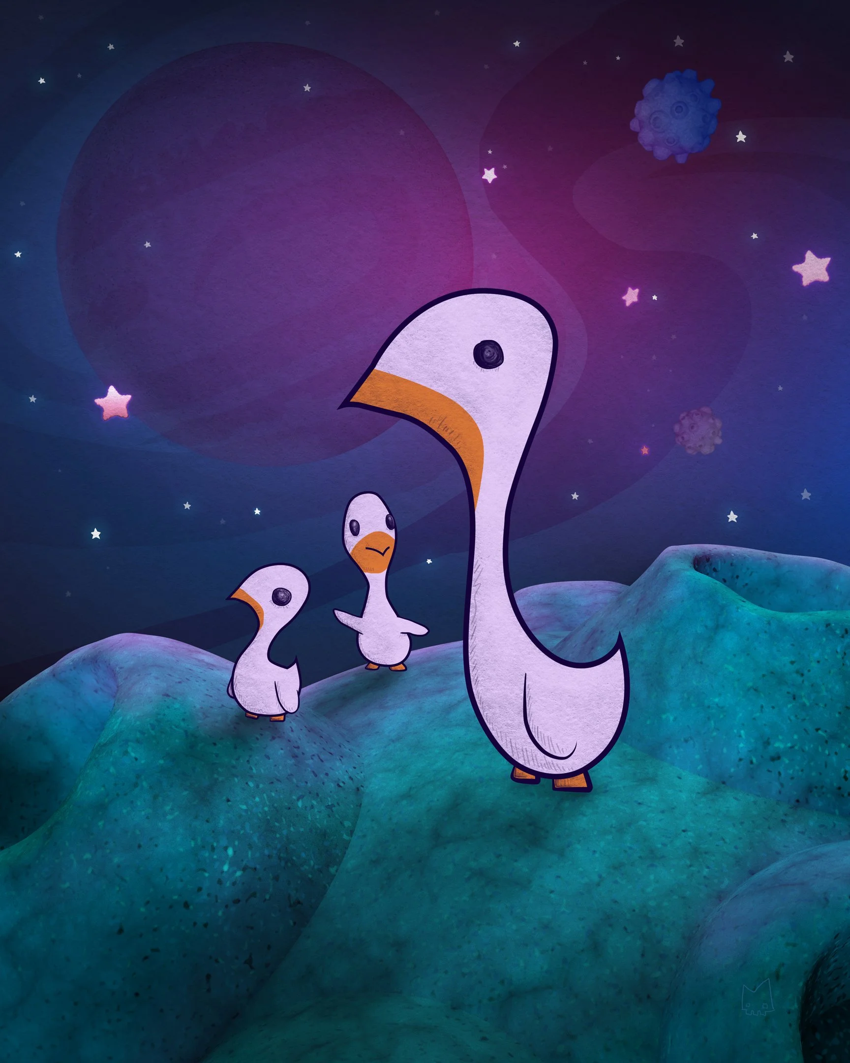A family of geese lost in space. A mother and her 2 goslings try to scout their next route through the beauty of space.