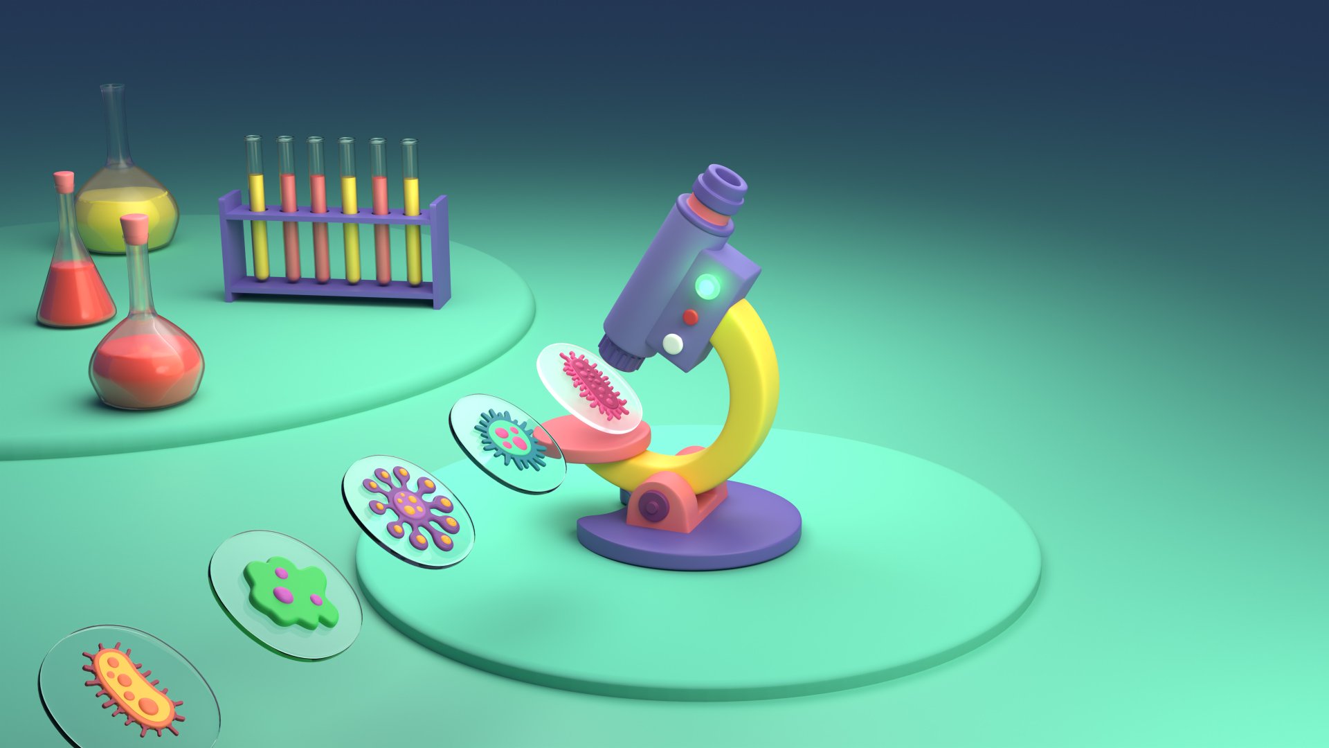 Bright and curious, the playful MicroLab is scanning our new friends. 4k render.